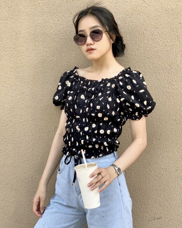 Kamong A070 ruffled flower shirt