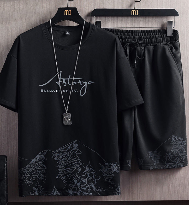 New Leisure Suit Men Korean Short Sleeve Fashion Shorts Suit Men T-shirt Sport Suit Two Piece Set
