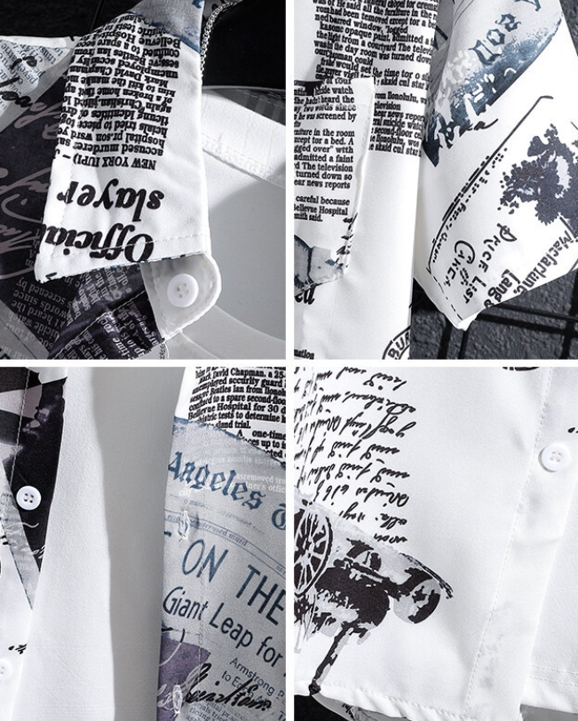 Summer Men's Short-Sleeved Newspaper Shirts, Thin Graffiti Trendy Clothes, Printed Loose INS Trendy Tops. Half-Sleeved Shirt.