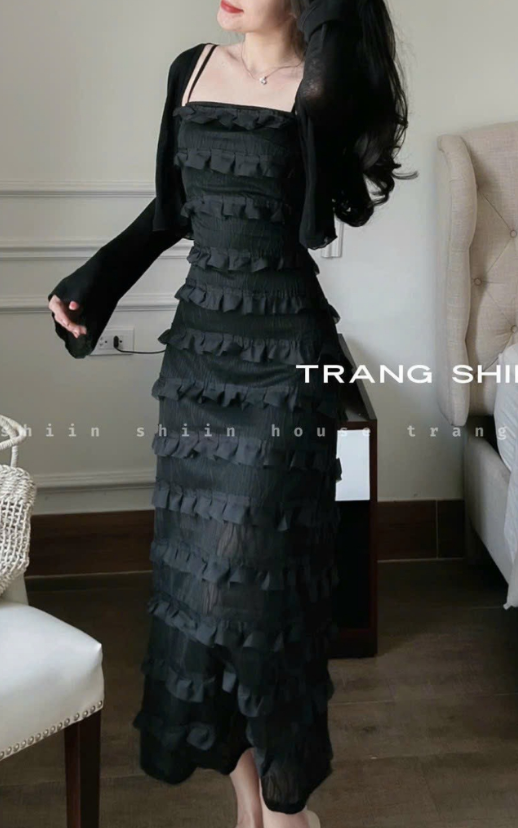 MMRS. Garb - Valarie V Neck Ruffles Dress - Black