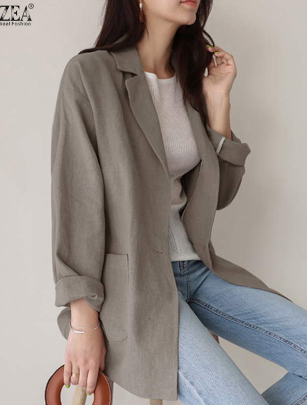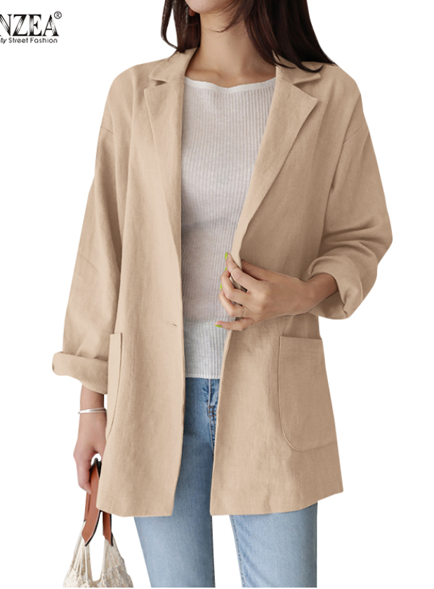 ZANZEA Women Lapel Loose Turn-Down-Collar Long Sleeve Casual Blazer